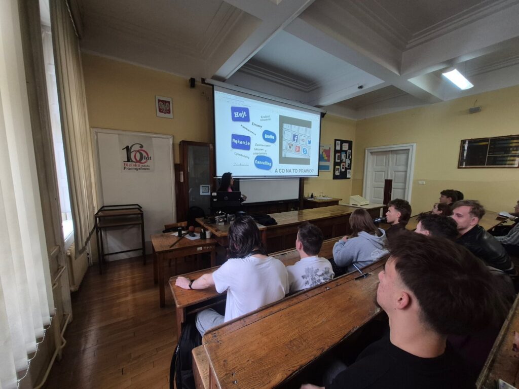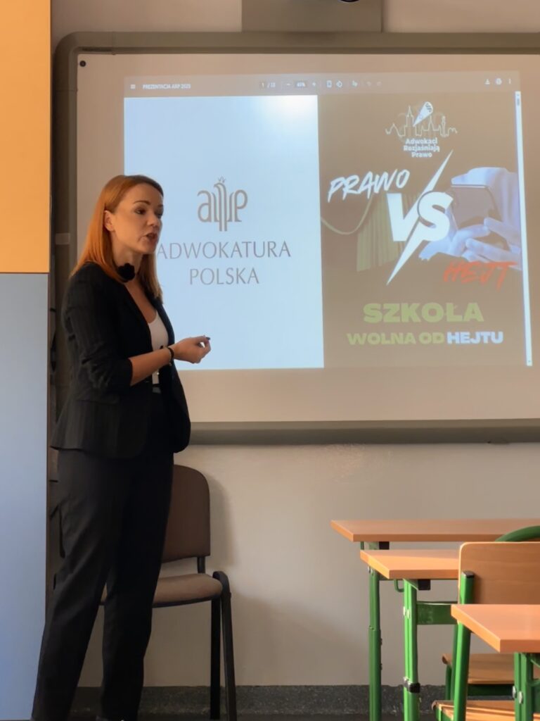 To inicjatywa, której celem jest kształtowanie świadomości prawnej młodzieży, ale także promowanie postaw opartych na szacunku, odpowiedzialności i empatii. Adwokaci w przystępny sposób pokazują uczniom, że hejt nie jest błahostką – może krzywdzić i prowadzić do realnych konsekwencji prawnych. W ramach zajęć omawiane są także sposoby reagowania na przemoc słowną i cyberprzemoc oraz znaczenie wzajemnego szacunku w sieci i w codziennych relacjach.