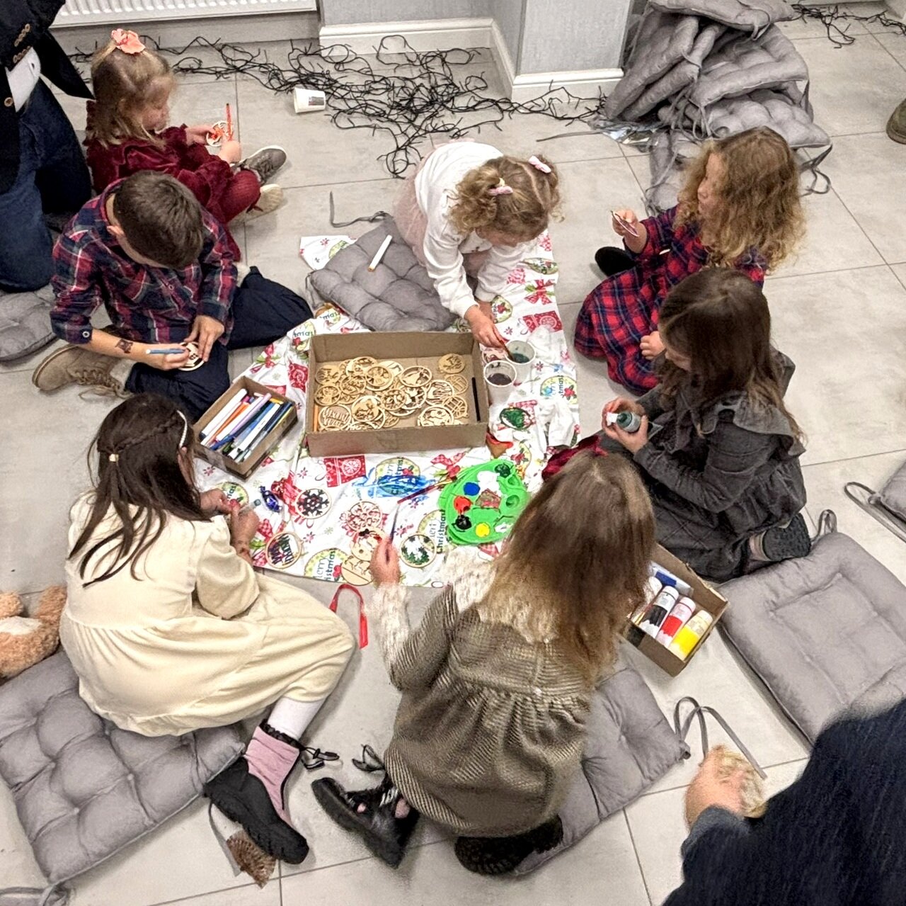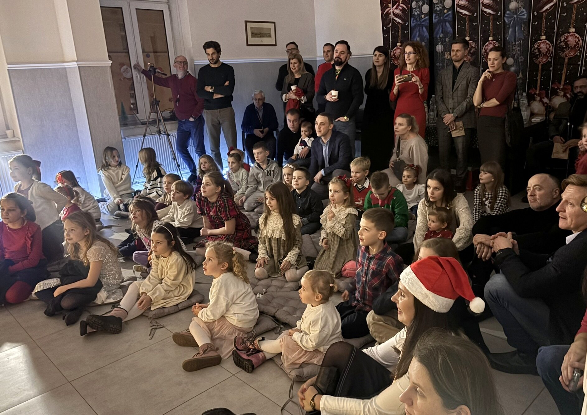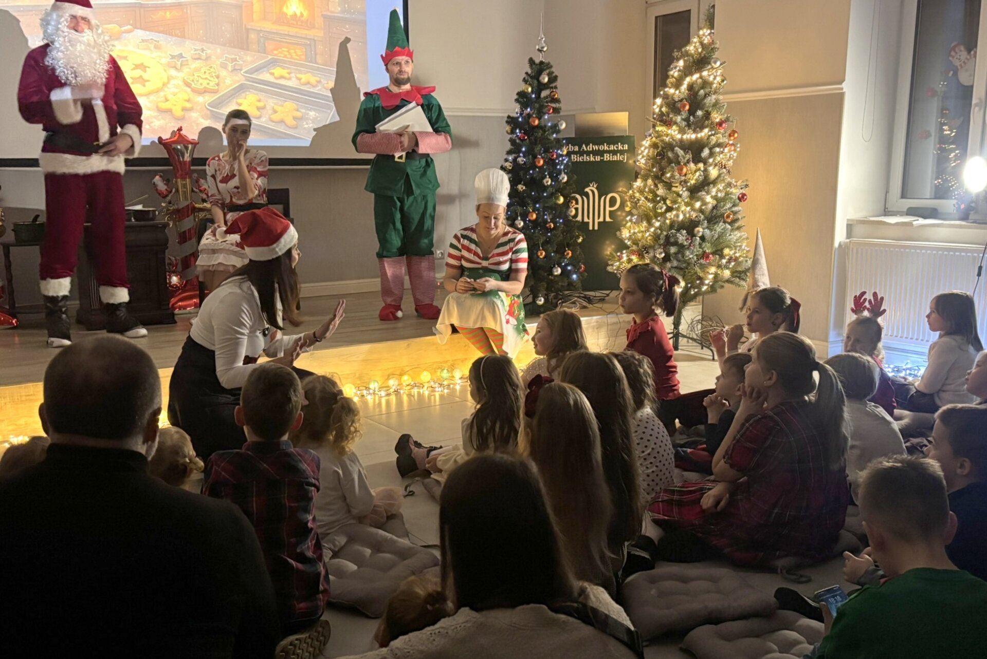 W dniu 4 grudnia 2025 r. nasze dzieci znowu miały okazję zobaczyć się z Mikołajem. W siedzibie naszej ORA totalnie świąteczny klimat – choinka, ciasteczka, światełka. I nastrój oczekiwania. Więc przybyły dzieciaki w czwartkowe popołudnie spotkać przygotowane dla nich niespodzianki. Najpierw sobie gadały i czekały z zaciekawieniem, już w dobrych humorach. Potem zgasło światło i pojawiła scena ze świątecznym przedstawieniem.