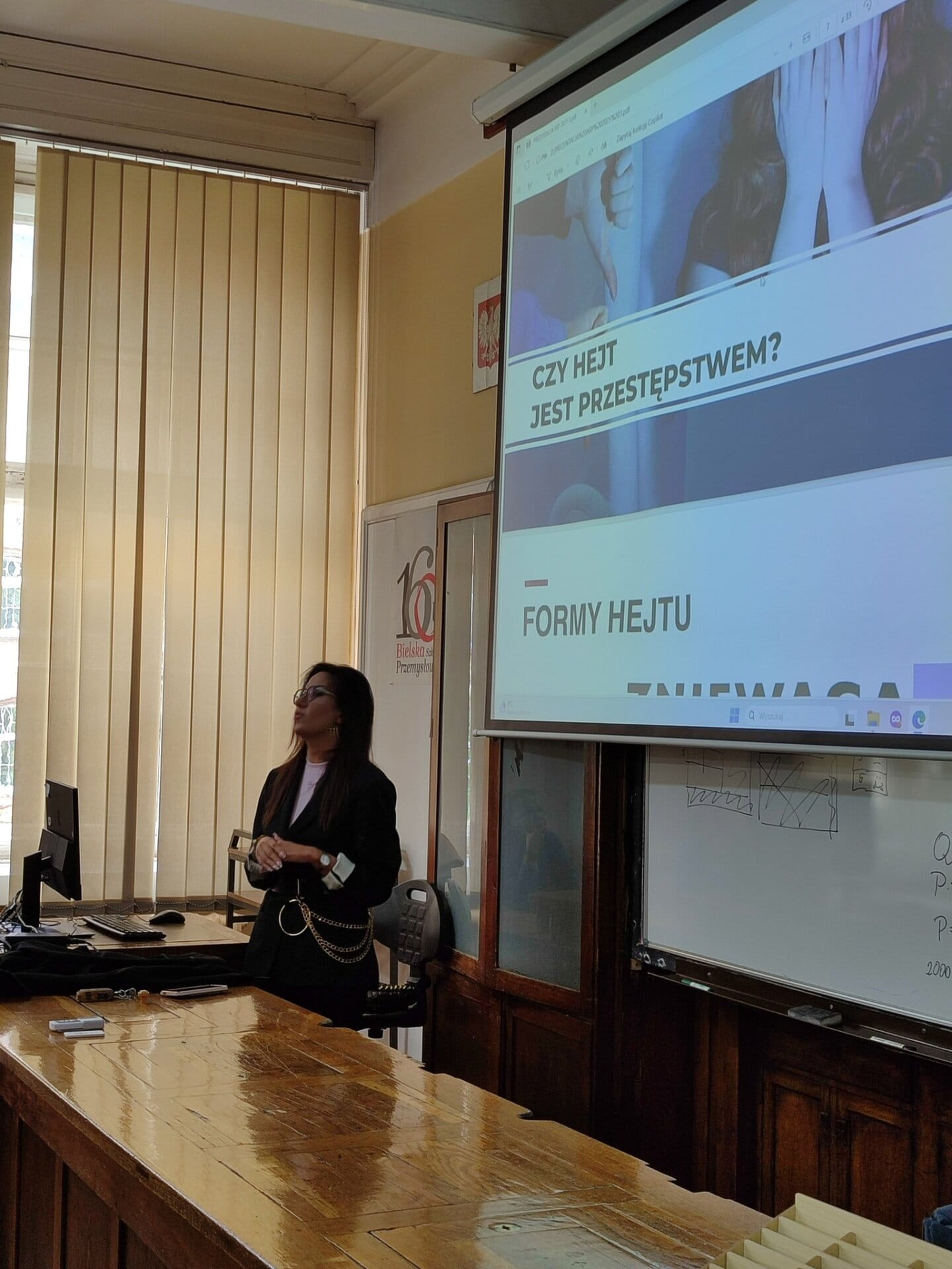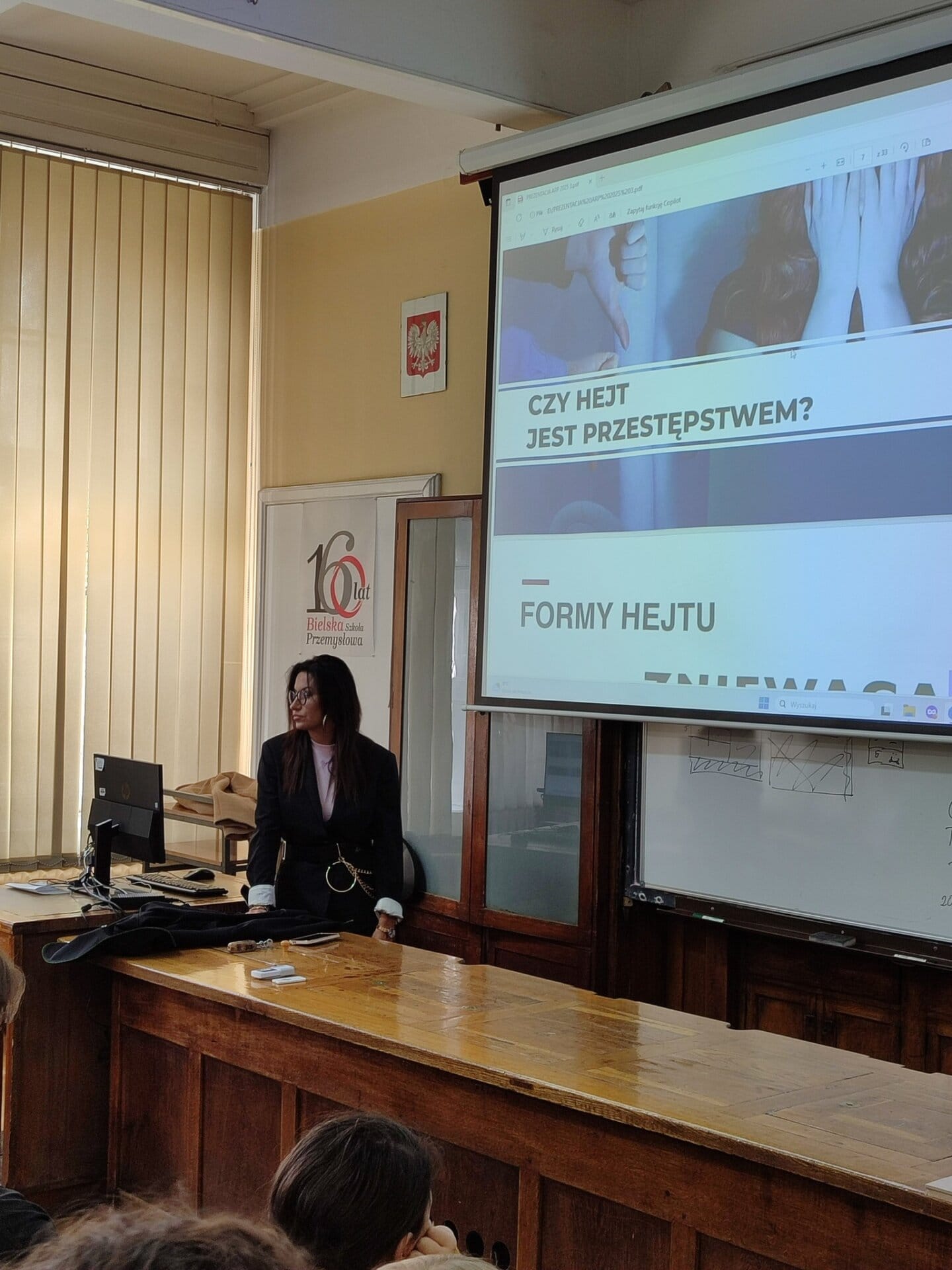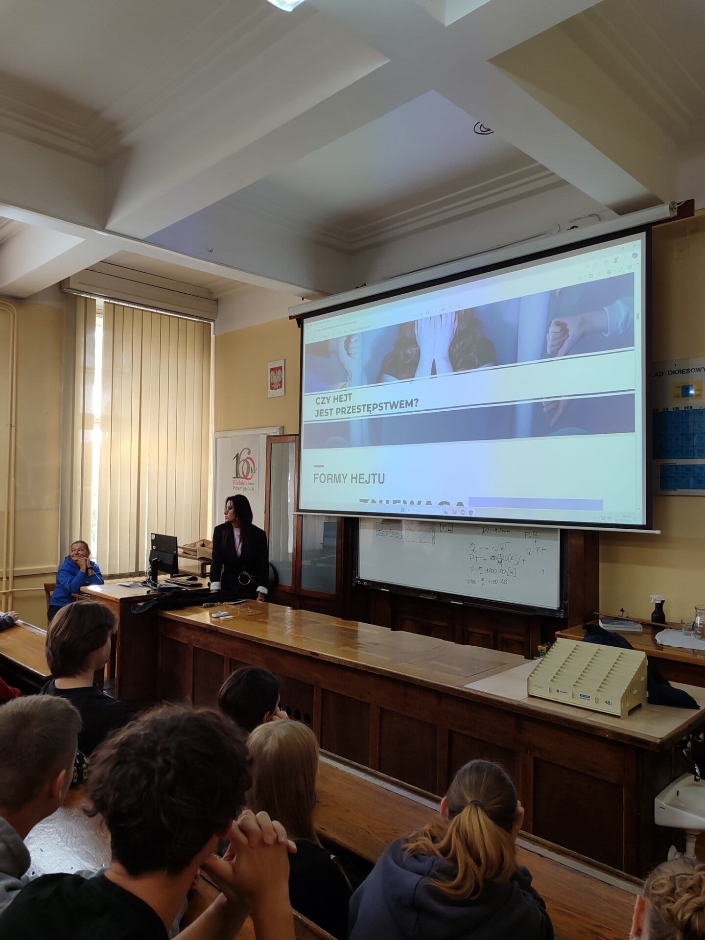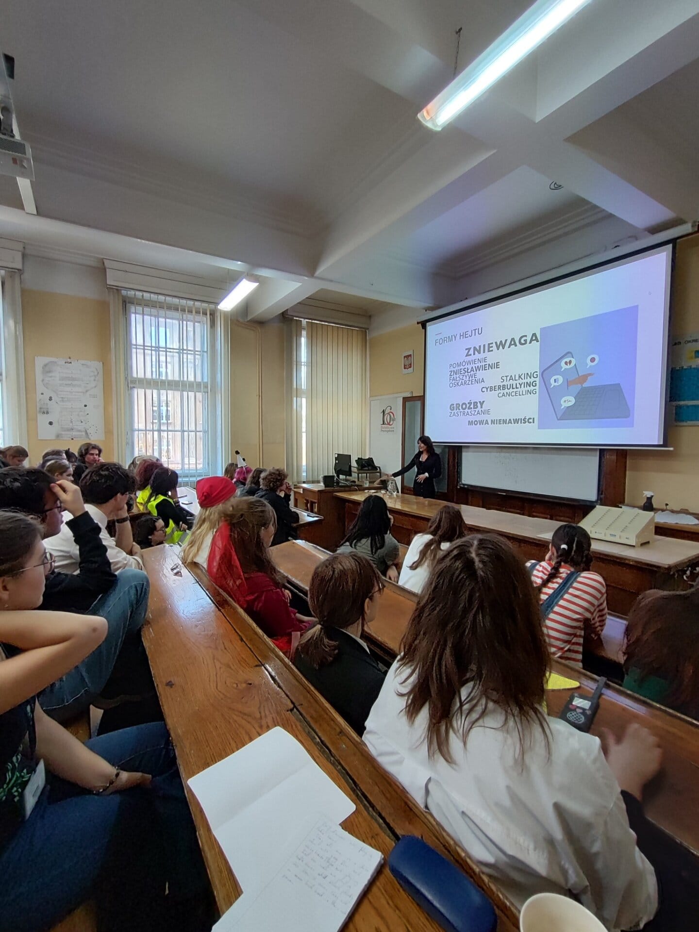 Podczas spotkań rozmawiano o zjawisku hejtu, jego skutkach i konsekwencjach prawnych, a także o tym, jak reagować, gdy jesteśmy świadkami przemocy słownej – w sieci i w życiu codziennym. ![]()