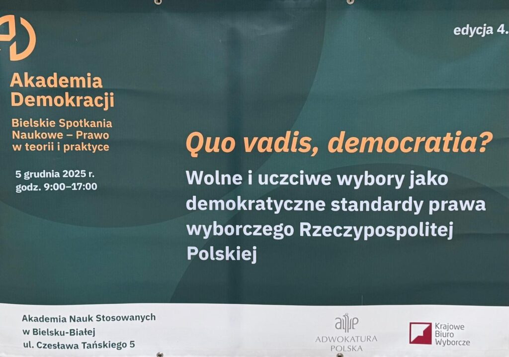Za nami IV edycja ogólnopolskiej konferencji “Quo vadis,,democratia? Bielskie Spotkania Naukowe – Prawo w teorii i praktyce”, której współorganizatorem, wraz z Akademią Nauk Stosowanych w Bielsku-Białej, jest Okręgowa Rada Adwokacka w Bielsku-Białej. Tegoroczna edycja została poświęcona prawu wyborczemu.