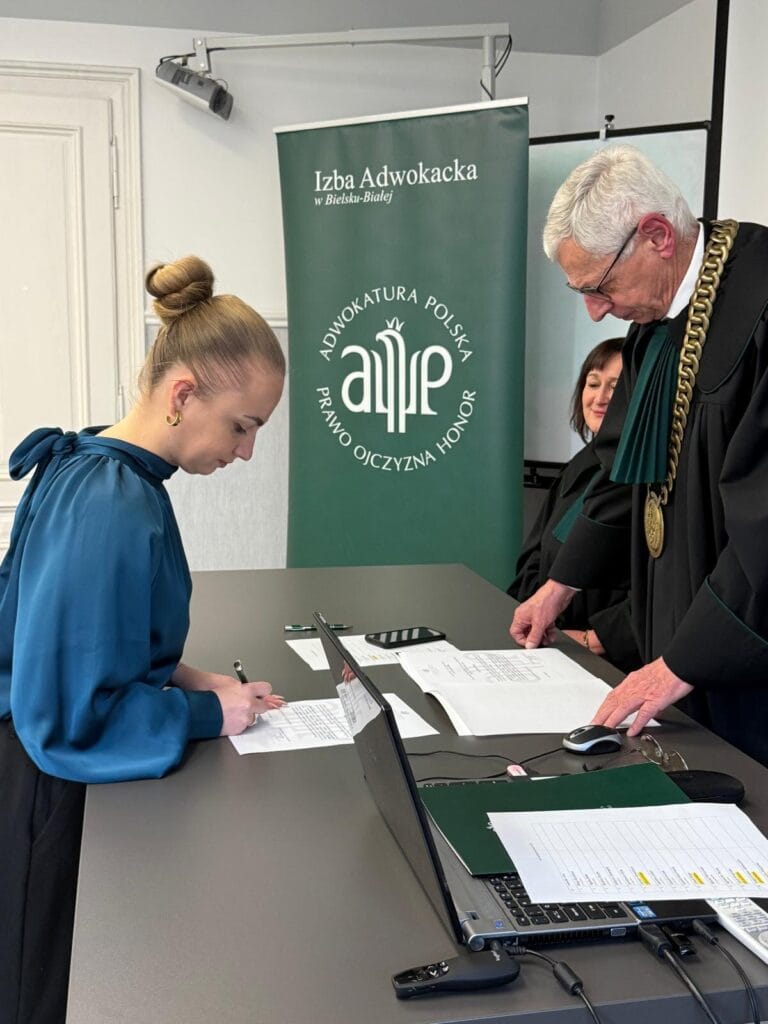 W dniu 15 grudnia 2025 r. w siedzibie Okręgowej Rady Adwokackiej odbyło się uroczyste ślubowanie aplikantek i aplikantów adwokackich, którzy od stycznia rozpoczną szkolenie w Izbie Adwokackiej w Bielsku-Białej.