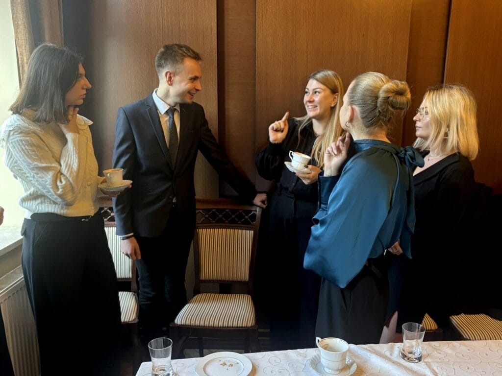 Po części oficjalnej aplikanci mieli możliwość poznać nieco historię naszej Izby i obejrzeli krótkie filmy o bielskiej Adwokaturze dawniej i dziś. A potem był czas na kawę i pogawędki.