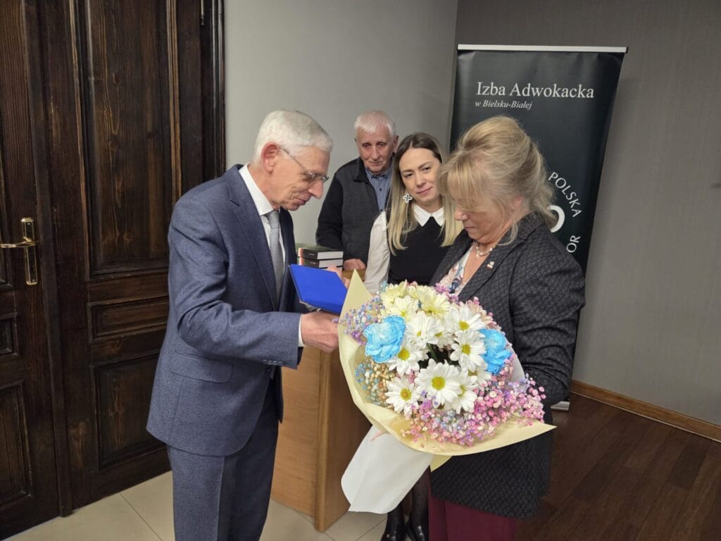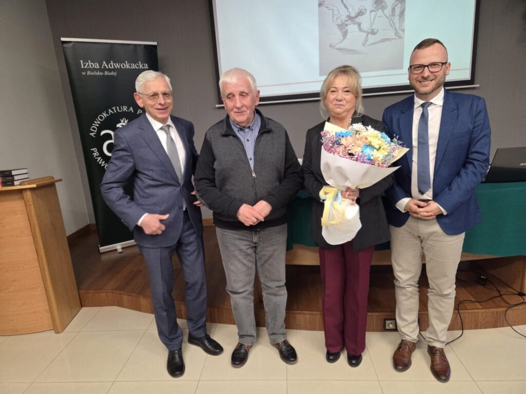 Pani Eleonora Szafran – córka „Teddy’ego” przybliżyła nam w czasie spotkania w Okręgowej Radzie Adwokackiej w Bielsku-Białej w dniu 9 kwietnia 2026 r. niezwykle barwne losy swego ojca. „Teddy” w obozie spotkał m.in. o. Maksymiliana Kolbe, uczestniczył w obozowym ruchu oporu rtm. Witolda Pileckiego, a także stoczył szereg walk bokserskich, walcząc o honor Polaków oraz o lepszy byt swój i kolegów. Były momenty smutne, kiedy opowieść dotyczyła trudnych pierwszych miesięcy obozowej rzeczywistości, ale i momenty zabawne. Były też momenty zadumy nad kondycją człowieka, kiedy liczyła się walka o przetrwanie, pomoc koleżeńska, nadzieja, ale i szczęście.