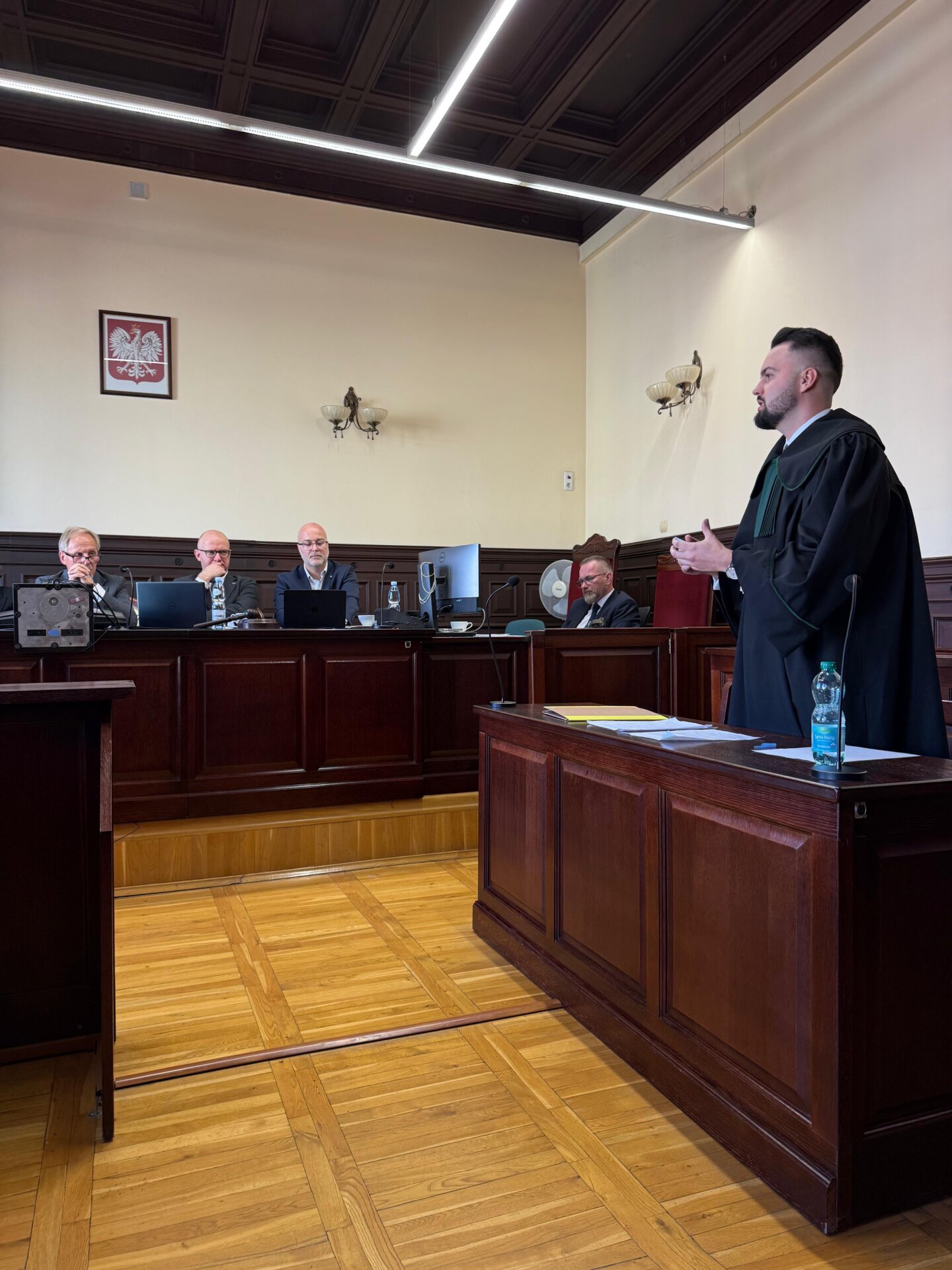 W dniu 20 września 2025 r. przedstawiciele naszej Izby, aplikanci adwokaccy III roku, Wojciech Bieniek i Mateusz Hałat, uczestniczyli w – organizowanym przez Okręgową Radę Adwokacką w Wałbrzychu – Środowiskowym Konkursie Krasomówczym, który w tym roku odbył się w Świdnicy. Dzięki uprzejmości władz Sądu Okręgowego w Świdnicy, uczestnicy mogli występować w jednej sal rozpraw tegoż Sądu.