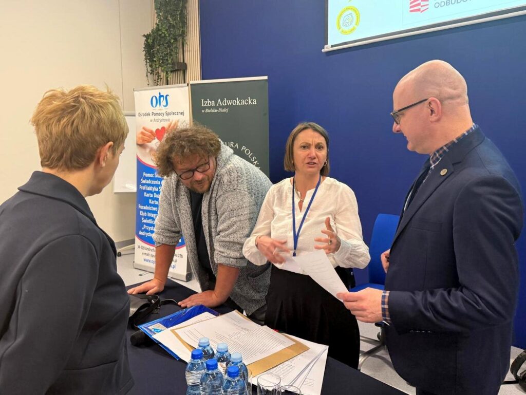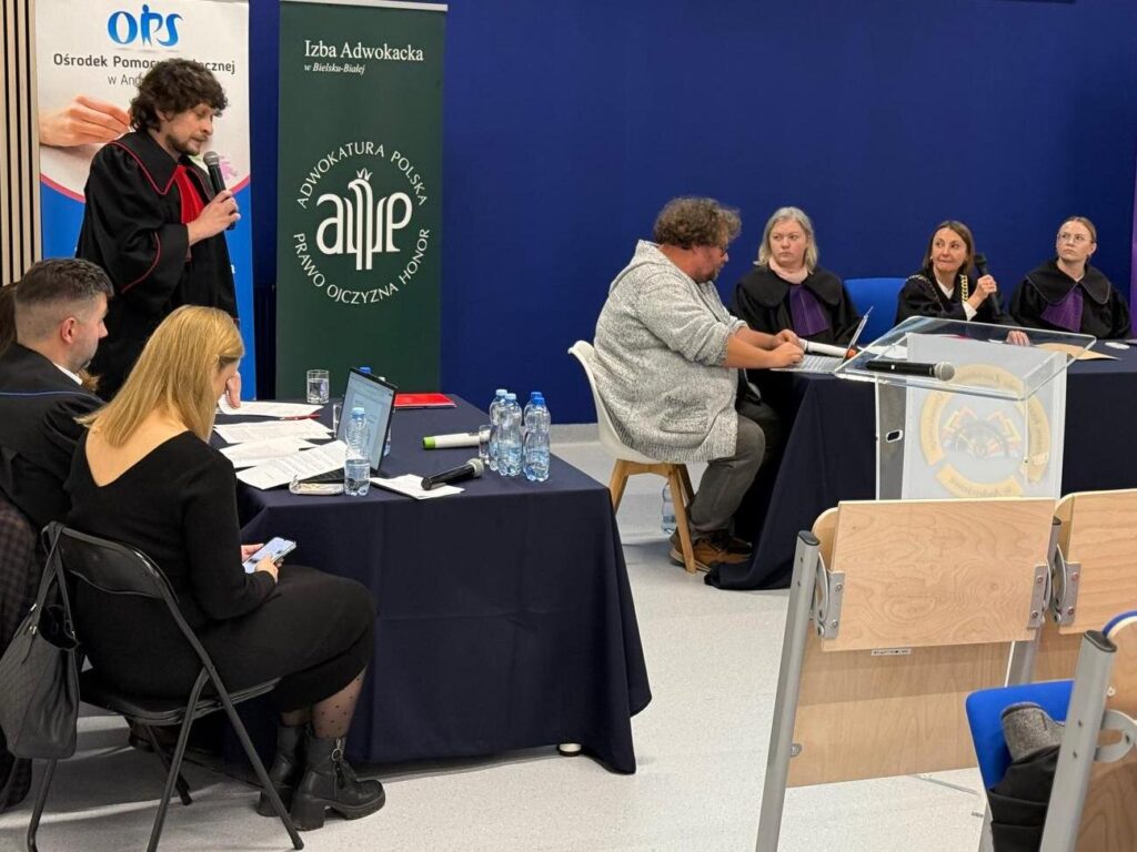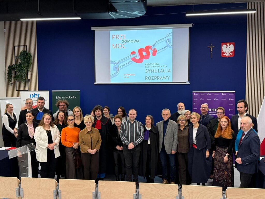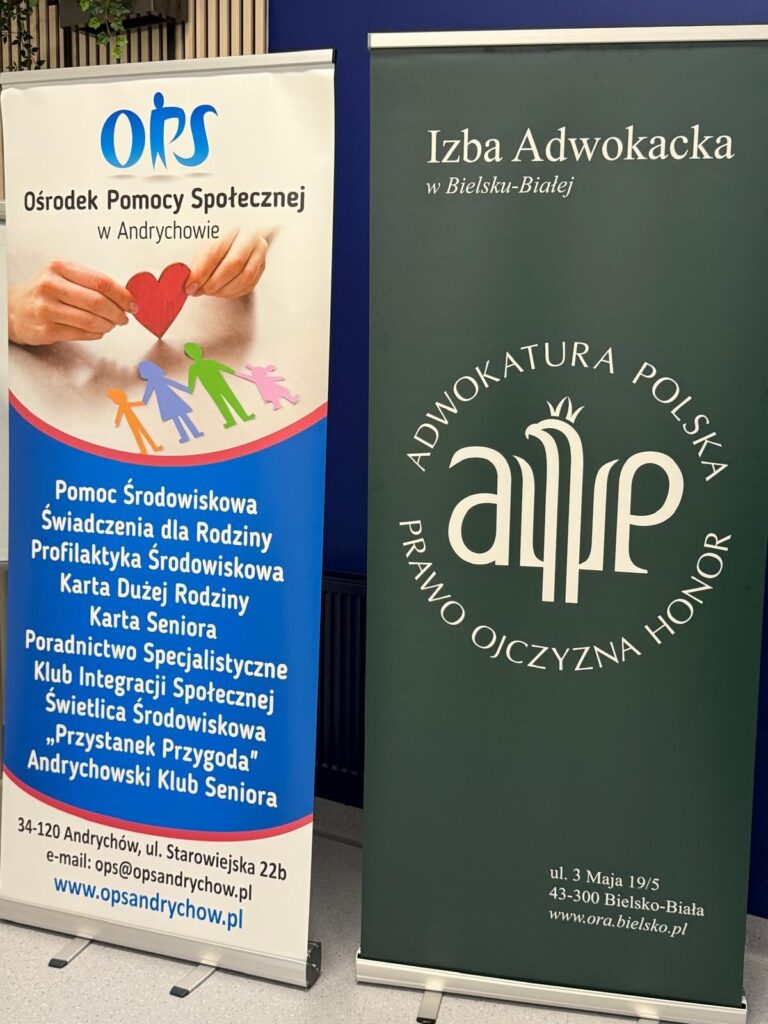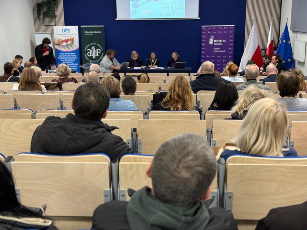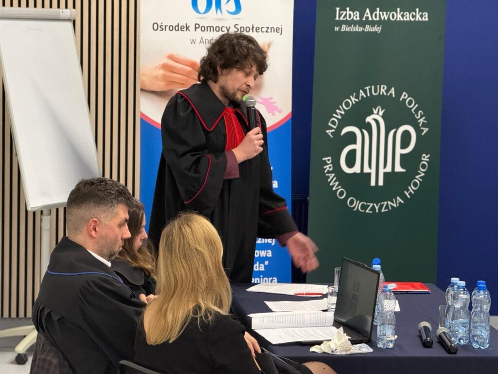 W dniu 9 grudnia 2025 r. – w związku z zaproszeniem Ośrodka Pomocy Społecznej w Andrychowie oraz Burmistrz Andrychowa Pani Beaty Smolec – Okręgowa Rada Adwokacka, wspólnie ze Śląskim Oddziałem Stowarzyszenia Sędziów Polskich Iustitia oraz Okręgową Izbą Radców Prawnych w Katowicach zorganizowała dla mieszkańców Andrychowa symulację rozprawy dot. przemocy domowej.